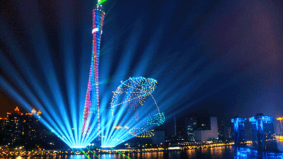 晚会表演精彩纷呈,而其中800架无人机演绎《新彩云追月》,带观众领略前所未有的美的境界。此次无人机编队表演由远度科技和高巨创新合力打造,从艺术设计到技术实现再到完美无瑕的现场实施,双方团队倾尽全力,各施其责,为此次晚会量身定制了一场集光影科技、现代艺术、岭南文化于一体的视觉盛宴。